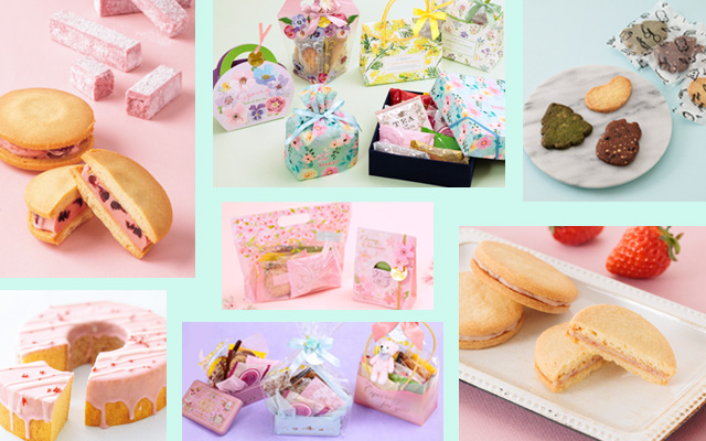 苺チョコに甘酸っぱいドライ苺をちりばめた「苺のバウムクーヘン」や春限定の「ひらり(桜)」、「桜のピュアアマンド」などを入れたバスケットなど春らしいパッケージのギフトも販売中です。